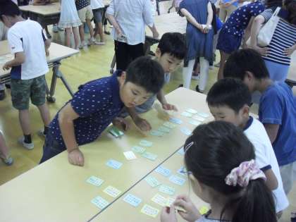 31名の児童が参加し、8名の指導者のもと「五色百人一首」を楽しみました。10名を超える付添いの保護者に交じって、来年度本校に入学する子も数名「坊主めくり」を楽しんでいました。