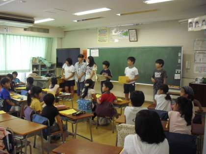 各たてわり班の6年生がリーダーとなり、10月8日に行う予定のたてわり遠足について、馬事公苑で行う遊びや歩く時の約束と並び順、班ごとのめあて等を、相談して決めました。
