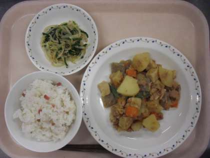 肉じゃがうま煮は、1年3組のおかずのリクエスト第一位でした。梅はクエン酸とリンゴ酸を多く含み、防腐効果・食欲増進・整腸作用があります。塩気のある梅は白いごはんがよく進みます。