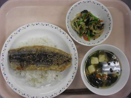 今日は、秋の味覚である旬のさんまを食べました。DHAやEPAといった体によい働きをする脂質を多く含みます。ご家庭では、大根おろしを添えて塩焼きで食べる食べ方が昔から好まれています。