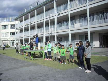 台風一過の青空のもと、さわやかな空気をあびながら、芝生の校庭いっぱいをのびのびと走り回りました。