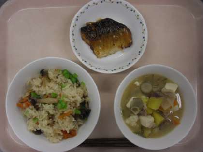 今日から赤小の米は、新米(あきたこまち100%)に変わりました。この時期に登場するしめじごはんは、うす味でしたのでしめじの味を感じながらおいしくいただくことができました。さつま汁は、さつまいもの甘みが出て寒い時期にはホッとあたたまります。