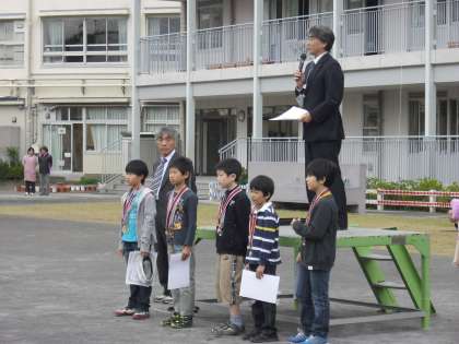 そして、吉村実校長が、空手の世田谷区大会で優秀な成績を収めた児童を表彰しました。