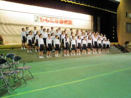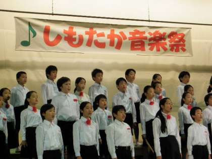 第12回になる地域コンサート「しもたか音楽祭」に本校合唱団が昨年に続いて出演しました。演奏した曲は「ふるさと」「村まつり」「もみじ」です。今回は49名が参加しました。松沢小学校体育館に響き渡る、澄んだ歌声を披露することができました。