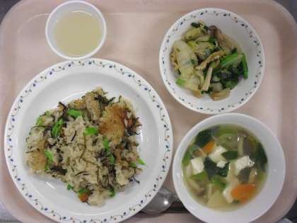 ★食材の産地:人参(千葉)、さやえんどう(鹿児島)、たけのこ水煮(福岡)、しめじ(長野)、長ねぎ(茨城)、小松菜(埼玉)、白菜(茨城)、えのき茸(新潟)、ひじき(長崎・三重)、すき昆布(北海道)、白滝(群馬)、りんごジュース(青森)、米(秋田)、もち米(千葉)