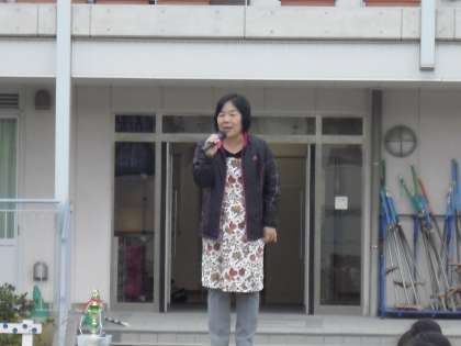 はじめに、鹿俣昭子養護教諭が、風邪の予防について話しました。手洗い、うがいが効果があるので、進んでやるようにと話しました。