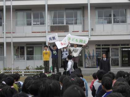 次に、あいさつキャンペーンについて、5年2組の代表児童が、大きな声で、進んで、子ども同士でもあいさつするように呼びかけました。