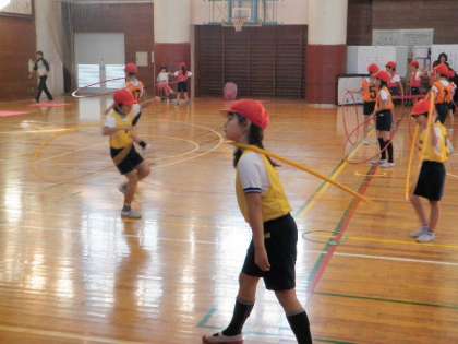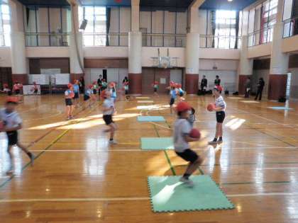 世田谷区立小学校教育研究会(世小研)体育部体つくり運動領域部会の研究授業が行われました。1年3組担任が3年2組の児童を借りての授業でした。授業は、体つくり運動の中の「多様な動きをつくる運動」で、最初に、にんにん体操で準備運動した後、ボールと輪を使った運動をしました。他学年を借りての授業でしたが、授業をして5時間目とは思えないほど、先生と児童の呼吸が合っていて、とても運動量の多い授業でした。