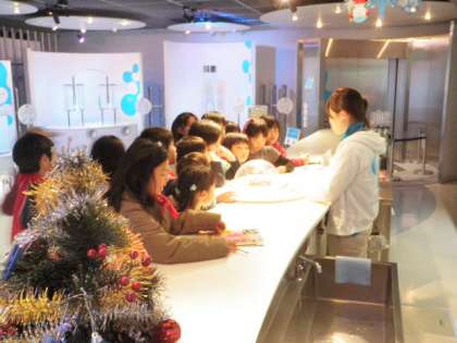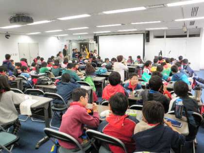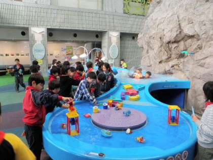 雨のため、昼食は水道歴史館のレクチャーホールで食べました。二つ目の見学場所は、お台場にある水の科学館でした。児童の中には、来たことがあると言っていた子もいましたが、グループごとに楽しく見学することができました。申込制のシアター、ツアーや実験もあり、とても楽しく水の学習ができたようでした。