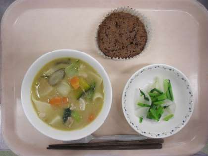 ★冬至献立 ★ランチルーム2-2 <ほうとう・かぶのゆずかけ・おからマフィン・牛乳>