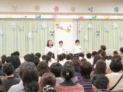 総団員数81名のうち、60名が参加して、ウィンターコンサートが開かれました。前田先生、齊藤先生、木俣先生、福嶋先生、荒木先生の指導、ピアノ伴奏により、子どもたちは、素晴らしい歌声を披露してくれました。これも、日頃の保護者の皆様の応援があってのことです。また、6年生12人のリーダーシップも忘れていけません。