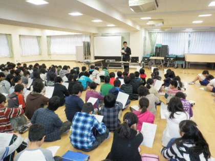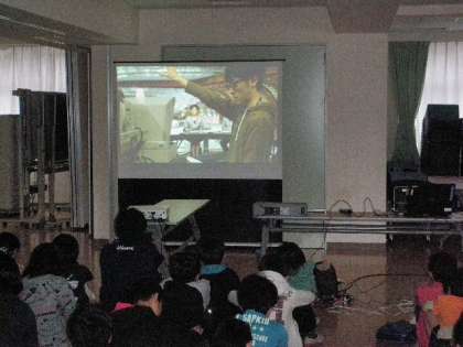 今日の職業紹介は、TBSテレビ報道局ニュース部にお勤めの保護者のお父さんにテレビ局の仕事について、紹介していただきました。現在は「ニュース23」のディレクターで、午後2時から午前2時までの仕事をし、70〜80人のいろいろな職種の人がかかわっているそうです。実際に赤堤小の子どもたちのために、いろいろな方に手伝っていただいて紹介DVDを作ってくださいました。