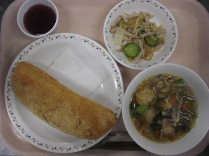 <あげパン・肉団子入り春雨スープ・白菜の中華サラダ・ぶどうゼリー・牛乳>