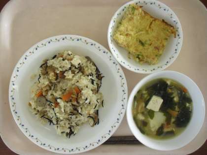 <ひじきごはん・切干大根の卵焼き・みそ汁・牛乳>