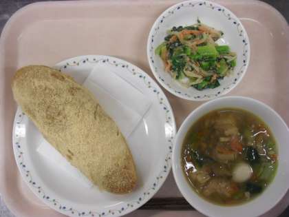 <あげパン・肉団子入り春雨スープ・野菜のごまだれかけ・牛乳>