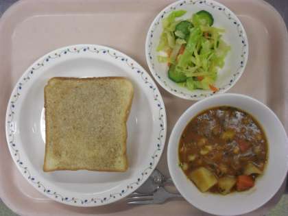 ★校長室会食(6-3) <セサミトースト・ビーンズシチュー・野菜のイタリアンドレッシングかけ>
