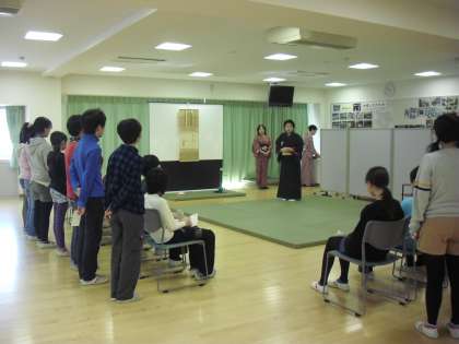 茶道の歴史や茶道のたしなみ方を教わりながら、一人ひとり体験しました。