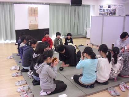 6年生が総合的な学習の時間に、日本文化の一つとして、茶道を体験しました。