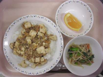 ★校長室会食6-2 <ごはん・麻婆豆腐・ナムル・いよかん・牛乳>