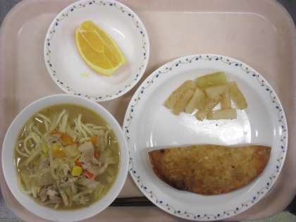 ★校長室会食6-2 <みそラーメン・ジャンボぎょうざ・大根の中華味・ネーブルオレンジ・牛乳>