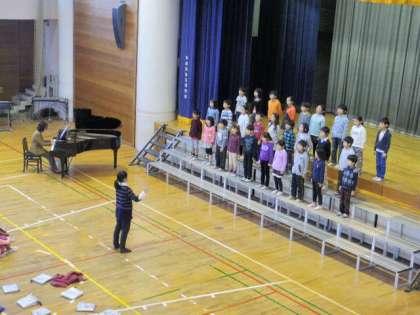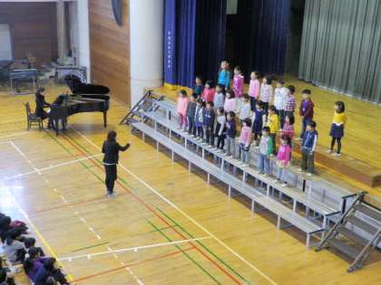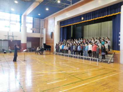 3校時は、1-2、2-2、4-2、5-1、6-2の発表でした。写真は、合唱団、1-2、2-2の様子です。