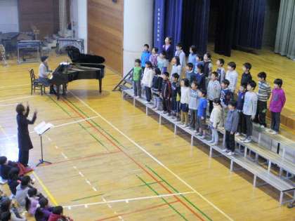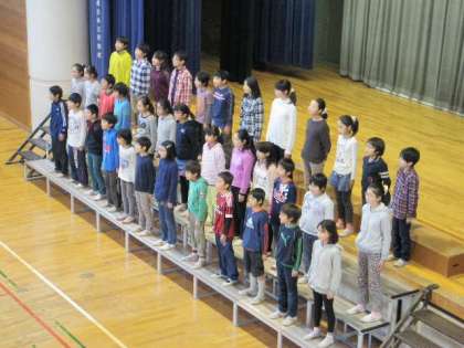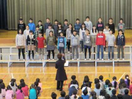 どの学級も、代表児童が歌う前に自分の学級をおもしろおかしく紹介していました。写真は、4-2、5-1、6-2の様子です。