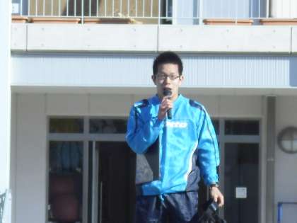 次に、少人数指導担当の丹羽励教諭が、「けがをしないように自分の体に気を付ける」ことの大切さを話しました。
