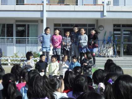 そして、1年3組があいさつキャンペーンについて、「元気にあいさつ」しようと明るく元気よくそして、楽しそうに呼びかけました。