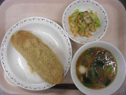 今日は6年2組でリクエストが多くあがっていた献立です。あげパンと肉団子入り春雨スープの組み合わせは、今年度のリクエストでよくありました。
