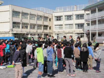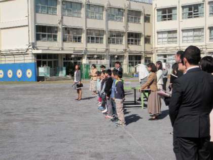 着任式後、始業式が行われ、「赤堤小学校をさらによくするために、児童一人一人が意見を出し合い、学級会・代表委員会でしっかり話し合ってほしい。」という校長の話の後、担任発表がありました。