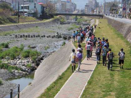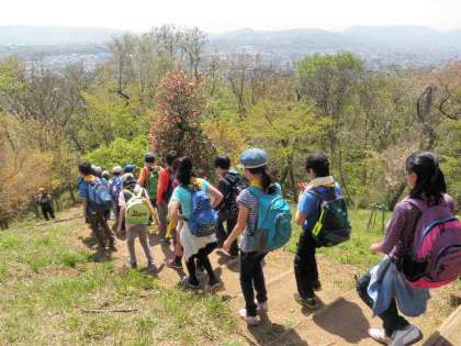 いい天気に恵まれ、若葉の中を気持ちよく歩くことができました。まだ雪をすっぽりかぶった富士山もきれいに大きく見えました。富士山がはっきり見えたのは、3回目で初めてのことでした。子どもたちは、感嘆の声を挙げていました。
