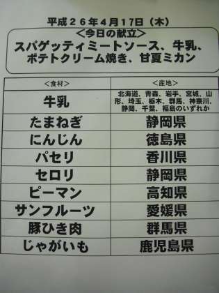 4月17日(木)の給食食材産地について