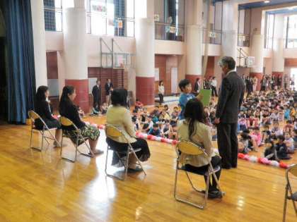 転退職された教職員の皆さんのうち、5名の皆さんがお別れにお出でくださいました。1年間から8年間、赤堤小学校の子どもたちのためにご尽力くださいました。代表の子どもたちが思い出の作文を読み、別れを惜しみました。赤堤小学校を去られる皆さん、新しい人生、新しい学校でご活躍ください。