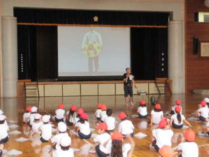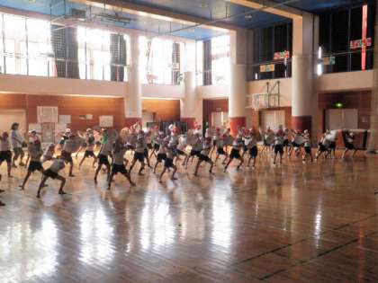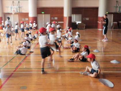 踊りを区切って、DVDを見ながら練習し、その後、一つ一つの振りを友達同士で確認していました。腰の落とし具合、巧みな花笠の使い回しが素晴らしい子どもが多く見られました。これから、練習を積み重ねていきますので、本番が楽しみです。