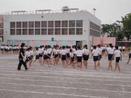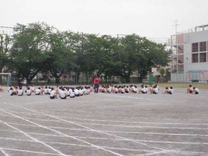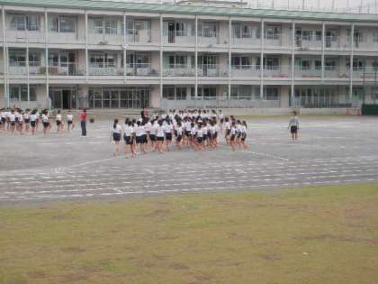 6年生の団体演技は、組体操です。安全に練習を行うため、練習の集中について指導がありました。今年は、隊列交差に挑戦しています。2人組、3人組などの隊形の確認を行っていました。これからの練習で、一つ一つの技が磨かれます。