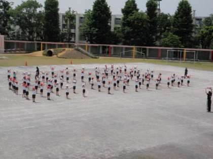 まだ、間隔がいろいろだったり、隊形ができていなかったりしていますが、当日は、学級ごとに違う色のポンポンを持ってしっかり踊ります。3回隊形を変えますので、学年から配付される案内をよく見て、鑑賞ポイントを決めてください。お楽しみに!