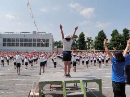 夏休みには、ラジオ体操をする地区もありますので、昨年度から準備運動は「ラジオ体操」にしました。今年は4月30日に講師の先生に低・中・高別に教えていただき臨みました。昨年より、ずいぶん上手にできるようになりました。準備運動係さん、お手本をありがとう。