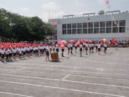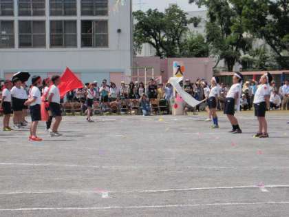 応援団のリードによる「エール交換」です。赤白ともに応援団長中心に素晴らしいエール交換でした。また、全員児童による「運動会の歌」も子どもたちの運動会への意気込みが感じられる、力のこもった歌声でした。