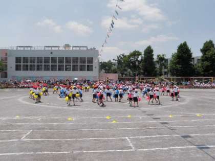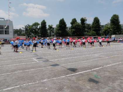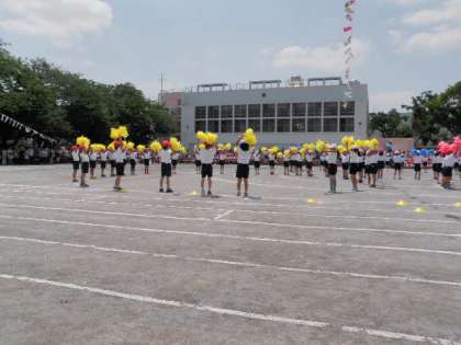 学級ごとに色違いのポンポンを持ち、一生懸命踊りました。我が子の踊りをご覧になれましたか。最後の閉会式までよくがんばりました。