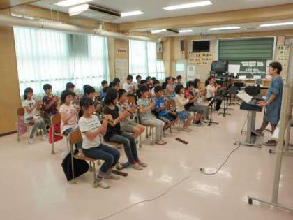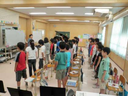 今日の授業は、歌「こいのぼり」リコーダー「一輪の赤い花」の学習でした。学習スタンダード「名前を呼ばれたら『はい』」を指導しながら授業が進みます。全員合唱から二人ずつの合唱へ進み、クレッシェンド、フォルテを意識しながらの学習でした。リコーダーでは、全員が1小節ずつリレーしながら学習しました。上手に歌える人は、名前を呼ばれて前で堂々と歌っていました。