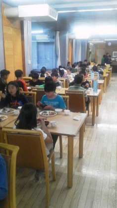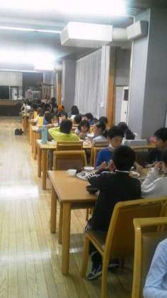 今日の夕食は、ご飯、鶏肉の照り焼き、肉じゃが、わかめサラダ、豆腐と青菜のみそ汁、こんにゃくの田楽みそ添え、ミニトマト、りんごジュースです。しっかり食べられている子が多いです。
