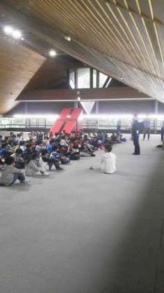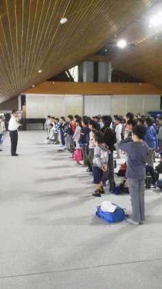 閉室式は、雨のため、村の会堂で行いました。今から雨の中、村めぐりに出発します。