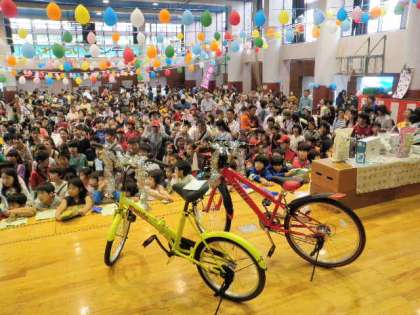 図書室では、劇団・せたがや紙芝居の皆さんが紙芝居を見せてくださいました。本校5年児童も劇団の一員です。14時20分からスタンプラリー大抽選会が始まり、5等・4等・3等・2等・1等と決まっていきました。地域・保護者の皆さん、準備等ありがとうございました。