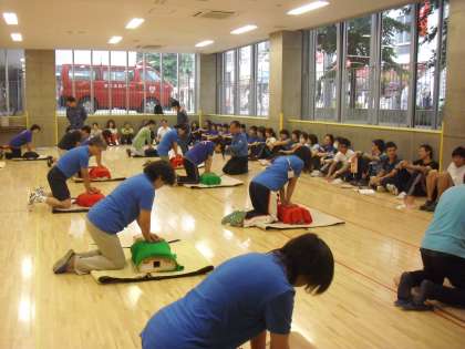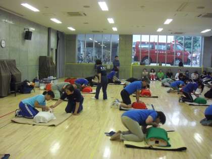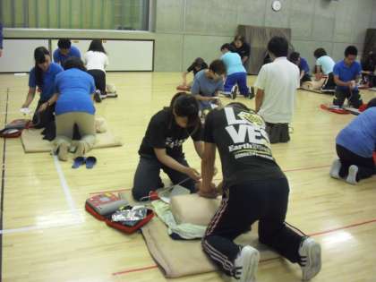 11日の午後、松沢小学校を会場にして救命講習会が行われ、本校の教員も参加しました。この講習会は毎年行われています。胸骨圧迫、人工呼吸、AEDの操作等一人ひとりが体験することで技術を身につけました。