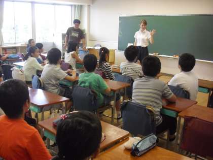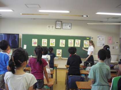 13日に今年度初のALTによる外国語活動がありました。ニックネームはロージーというローズマリー先生がいらっしゃいました。この日は、5年生3クラスと6年生1クラスが学習し、5年生は、1から20までの数字と1週間の曜日などを学習しました。