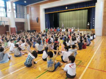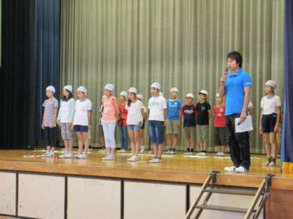 6月16日から始まる水泳指導を前に、運動委員会の皆さんが、水泳の決まり・バディのやり方について、実演で紹介してくれました。水泳クイズには、皆、手を挙げて答えていました。毎年教員も水泳指導に備え、普通救命講習を受けます。今年も、赤松学舎で講師を依頼し、6月11日に松沢小学校小アリーナで受講しました。