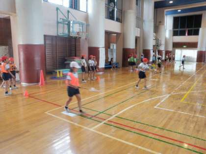 今日は、3年3組担任が指導を受けました。授業前に校長と話し合いをもち、研究授業体育「体つくり運動〜多様な動きをつくる運動〜」を行い、授業後、ご指導を受けました。