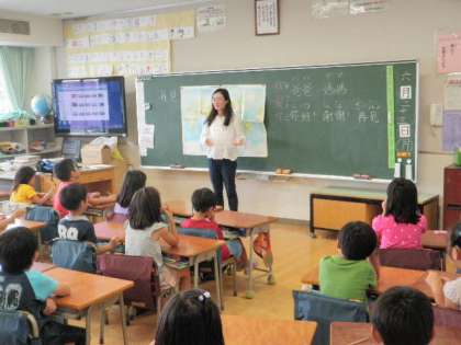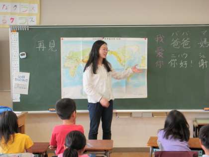 2年3組には中国の留学生で、中国の場所、あいさつ、オリンピック、特色などを映像で教えてくださいました。子どもたちは、中国語でのあいさつに親しみ、意欲的に取り組んでいました。
