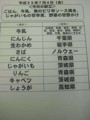 ※3日の食材産地がホームページに載せられず申し訳ありません。