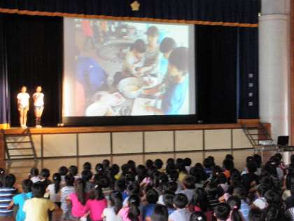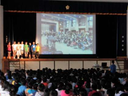 5年生が全校朝会で、6月4日から2泊3日で行ってきた川場移動教室の様子を報告しました。学年の代表児童は写真を使いながら、どんな活動をしたのか、どんな感想をもったのか発表していました。特に飯ごう炊さんやキャンプファイヤーが印象に残っているようでした。
